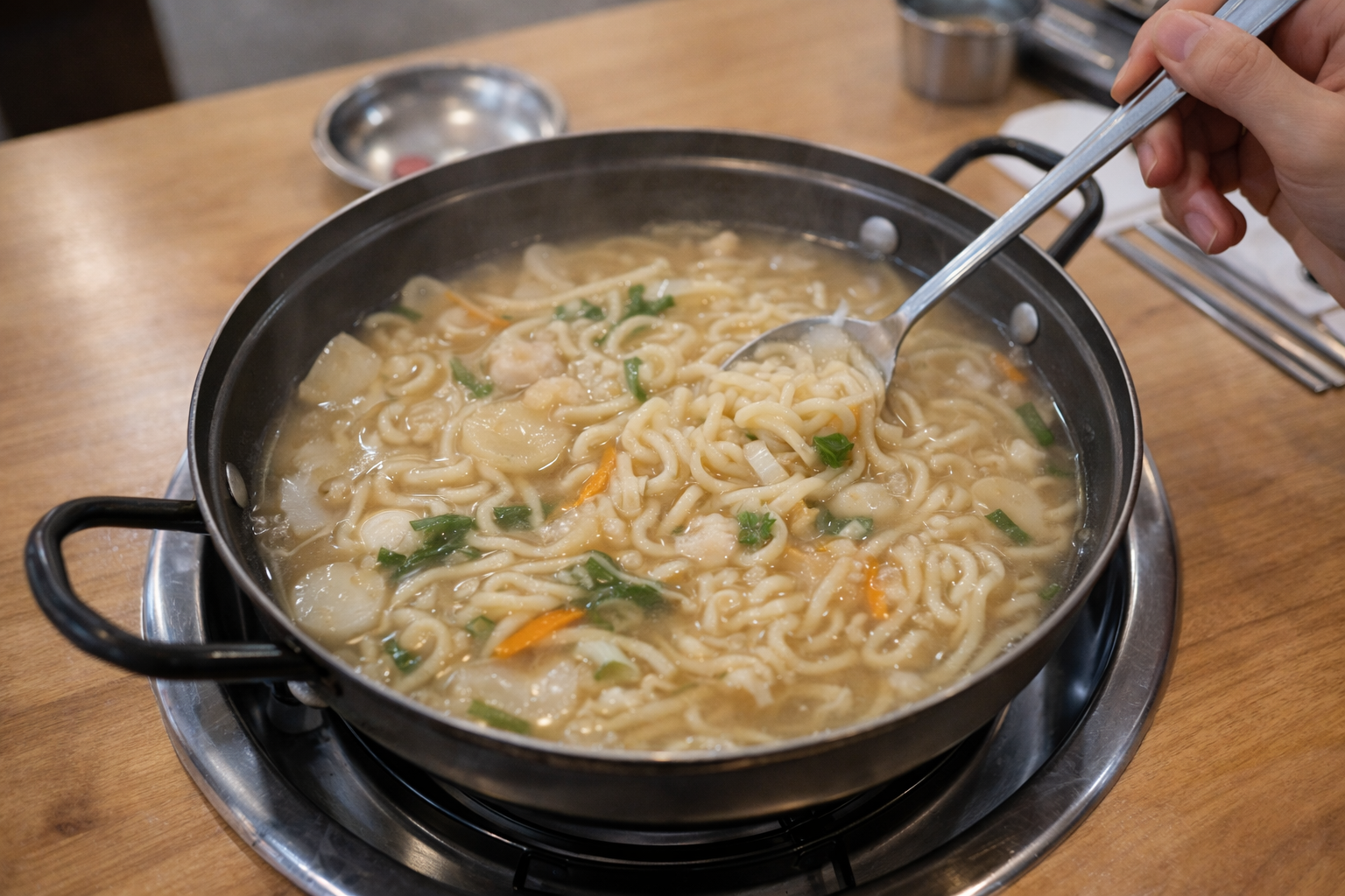 기본도 좋지만 얼큰 수제비로 가면 만족도가 확 올라가고, 뜨끈한 국물이라