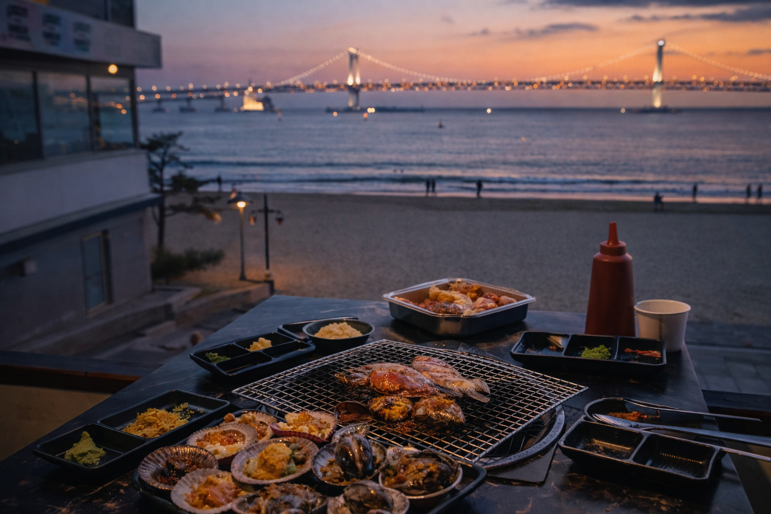신선한 조개를 즉석에서 구워 먹을 수 있으며, 바다 야경과 함께 즐기는 분위기가 뛰어나 관광객들에게 특히 인기 많은 부산 맛집입니다.