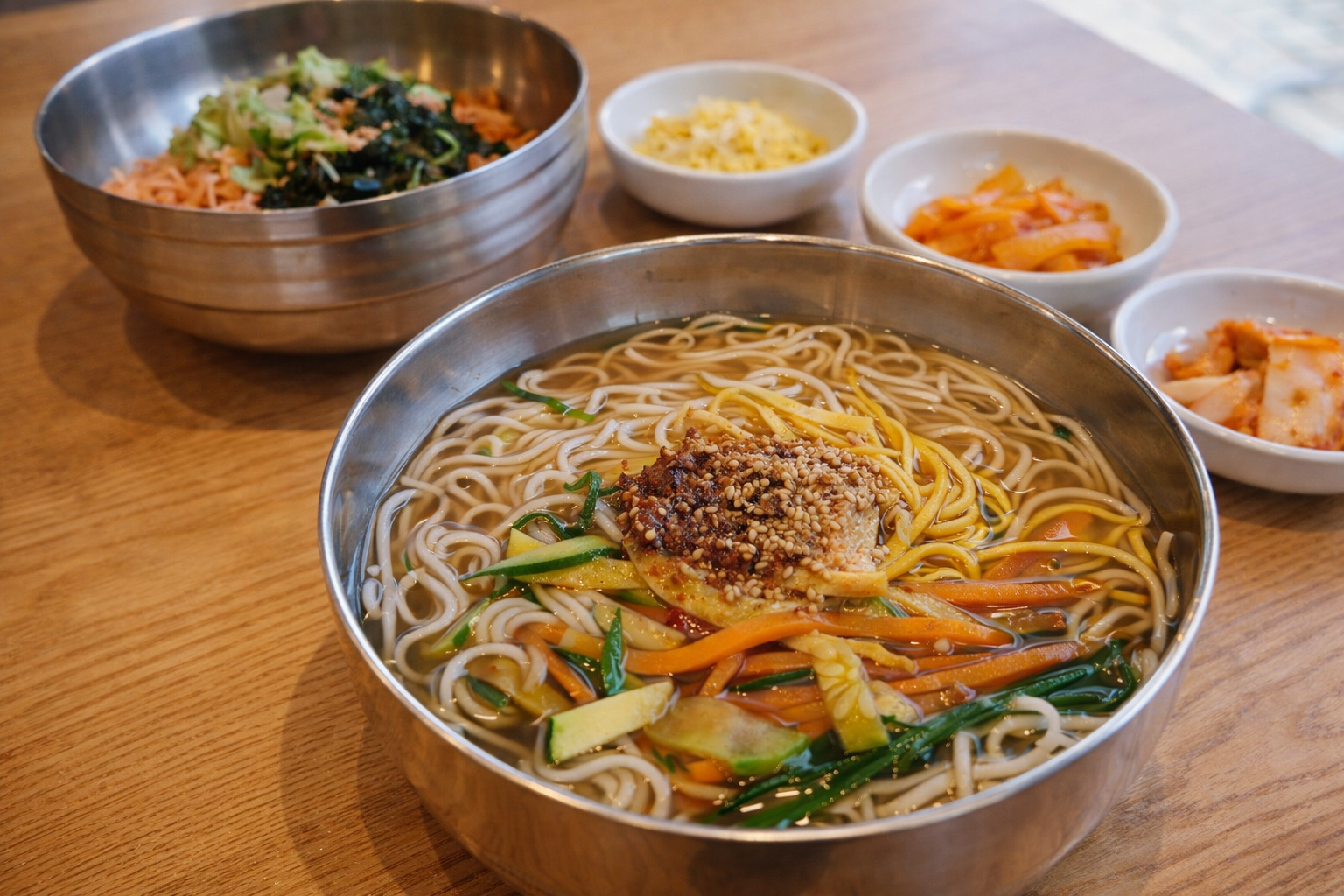 멸치 육수 기반의 담백한 국수로,